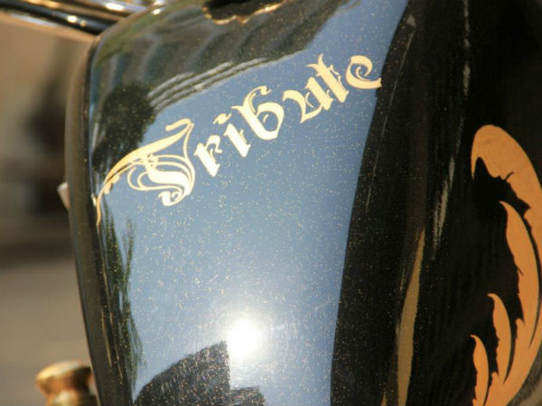 కొన్ని డిజైన్లలో కోఫ్టగిరి వర్క్ కోసం బంగారం, సిల్వర్ను ఉపయోగిస్తామని డుమాసియా చెప్పారు. ఈ ట్రిబ్యూట్ మోటార్సైకిల్ను కస్టమైజ్ చేయటానికి దాదాపు నెల రోజులు పట్టిందని ఆయన చెప్పారు. దీని ఫ్యూయెల్ ట్యాంక్పై బంగారంతో చేయబడిన ఆకులు, బంగారం చేసిన ట్రిబ్యూట్ అనే అక్షరాలు ఉంటాయి. ఫ్యూయెల్ ట్యాంక్ క్యాప్, హెడ్ లైట్, సైడ్ మిర్రర్, హ్యాండిల్ బార్, బాడీ ఫ్రేమ్, సైలెన్సర్ కవర్, వెనుక ఫెండర్ గార్డ్, బాడీ డిజైన్లలో అక్కడక్కడా బంగారాన్ని ఉపయోగించారు. గడచిన ఆదివారం దీనిని ఒబేరాయ్ మాల్లో ప్రదర్శనకు ఉంచారు.