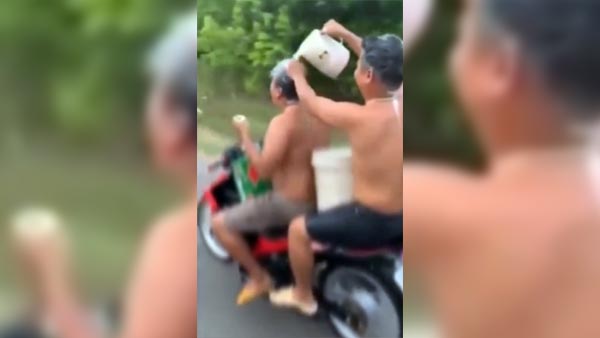 ఈ విధంగా స్నానం చేయడమే కాకుండా వారికి ఎటువంటి హెల్మెట్లు గాని, ఒంటిపై షర్టులు గాని ఏమి లేకుండా ఉండటం మనం గమనించవచ్చు. ఇద్దరు వ్యక్తులు ఈ విధంగా చేయడం సోషల్ మీడియాలో కలకలం రేపడం వల్ల పోలీసులు విచారణ చేపట్టడం జరిగింది. పోలీసులు బుధవారం వారి మోటారుబైక్ యొక్క లైసెన్స్ ప్లేట్ ఉపయోగించి ఇద్దరు వ్యక్తులను గుర్తించగలిగారు.