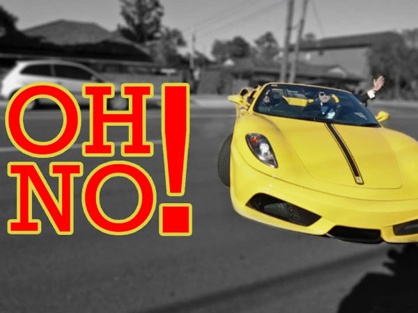 ఇందులో ఫెరారీ కారును నడుపుతున్న డ్రైవర్ ఓ చేతిని గాలిలోకి లేపి మరో చేతితో కారును నడుపుతూ ఈ స్టంట్ చేశాడు. పైకి లేపిన చేతి వేళ్ల మధ్యలో ఓ సిగరెట్ కూడా ఉంది. రేస్ ట్రాక్పై కాకుండా పబ్లిక్ రోడ్డుపై ఈ స్టంట్ చేయటం, కెమరామెన్కు చెప్పకుండా స్టంట్ ప్రారంభించడం ఇవన్నీ రిస్కీ అంశాలు. అదృష్టం బాగున్న కెమరామెన్ చివరి నిమిషంలో అడుగు వెనక్కు వేయటంతో ప్రాణాపాయం నుంచి తప్పించుకున్నాడు.