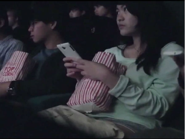ప్రేక్షకులు అందరూ తమ సీట్లలో కూర్చోగానే తెరపై ఓ కారు రోడ్డుపై వెళ్తూ ఉంటుంది. అలా కారు వెళ్తున్నప్పుడు, ప్రొజెక్టర్ రూమ్ నుంచి ప్రేక్షకులందరి సెల్ ఫోన్లకు ఒకేసారి మెసేజ్ను పంపించారు. దాంతో ప్రేక్షకులందరూ తెరపై నుంచి దృష్టి మరల్చి తమ ఫోన్లను చూడటం ప్రారంభించారు.