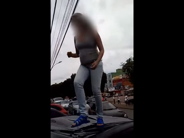 అప్పటికే ఈమె కారు ముందు మరియు వెనుక గల అద్దాలను పూర్తిగా నాశనం చేసింది.
