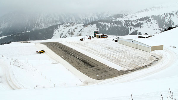 ఇది ప్రపంచంలోనే అతి చిన్న రన్వే కలిగిన విమానాశ్రయాలలో ఒకటిగా పిలువబడుతుంది. ఇక్కడ రన్వే పొడవు కేవలం 537 మీటర్లు. ఆల్ప్స్లో స్కీయింగ్ చేయాలనుకునేవారి కోసం విమానాశ్రయం నిర్మించబడింది. కనుక ఇది పర్వతాల మధ్యలో ఉంది. ఈ పర్వతాలను నావిగేట్ చేయడంతో పాటు, పైలట్లు కూడా విమానం కంట్రోల్ చేయడానికి చాలా షార్ప్ గా ఉండాలి.
