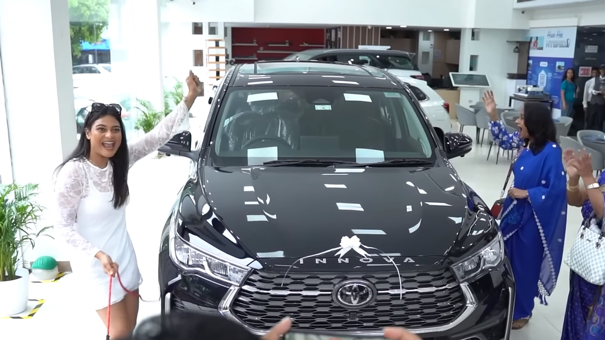 తన కుటుంబానికి కారును ఎలా బహుమతిగా ఇచ్చారో వివరిస్తూ భావోద్వేగ క్షణాలను ఈ వీడియోలో పొందుపరిచారు. టయోటా ఇన్నోవా హైక్రాస్ టాప్-స్పెక్ జెడ్ఎక్స్ (ఓ) వేరియంట్ను ఆమె కొనుగోలు చేశారు. ఈ వెర్షన్ మధ్య వరుసలో కెప్టెన్ సీట్లతో వస్తుంది. వీడియో చివర్లో రైడర్ గర్ల్ విశాఖ కొత్తగా కొనుగోలు చేసిన టయోటా ఇన్నోవా హై క్రాస్ తో పాటు మహీంద్రా థార్, హోండా మొబిలియో వాహనాలను ప్రదర్శించింది.
