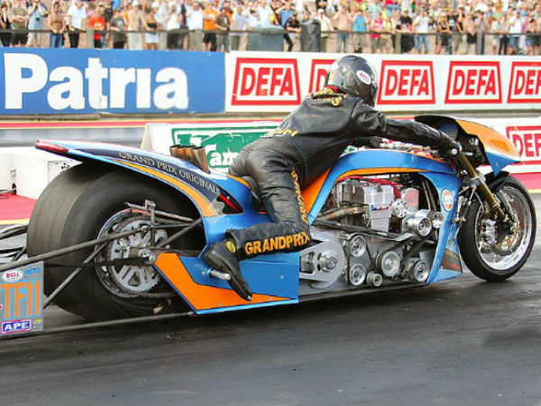 ఈ సూపర్బైక్ పేరు 'గల్ఫ్ టాప్ ఫ్యూయెల్ డ్రాగ్ రేసింగ్ బైక్'. గతేడాది చివర్లో ఇది ఇండియాకు విచ్చేసింది. గల్ఫ్ ఆయిల్ ప్రమోషన్ యాక్టివిటీలో భాగంగా ఈ సూపర్బైక్ను డిజైన్ చేసి ప్రపంచ వ్యాప్తంగా ప్రదర్శనలు ఇవ్వటం జరుగుతోంది. గల్ఫ్ టాప్ ఫ్యూయెల్ డ్రాగ్ రేసింగ్ బైక్ కేవలం కేవలం 6 సెకండ్లలోపే 402.8 కి.మీ.వేగాన్ని అందుకుంటుంది.