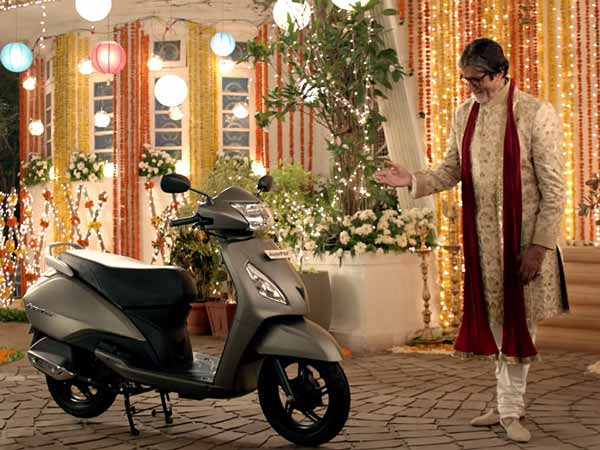 బాలీవుడ్లో అత్యధిక ఫాలోయింగ్ ఉన్న హీరో ఎవరంటే టక్కుమని గుర్తొచ్చేది అమితాబచ్చన్ అలాంటి హీరో మొదటిసారిగా టూవీలర్ కు ప్రచాకర్తగా ఉండటానికి ఒప్పుకున్నారు. ఆయన టి.వి.యస్ కు చెందిన జూపిటర్ మోడల్కు ప్రచారకర్తగా ఉండటానికి ఆమోదం తెలిపాడు. ఈ ఆమోదం వలన పండుగ సీజన్లో జూపిటర్ స్కూటర్ విక్రయాలను ప్రోత్సహించడానికి ఎంతగానో ఉపయోగపడుతుందని టి.వి.యస్ ప్రతినిధులు పేర్కొన్నారు.