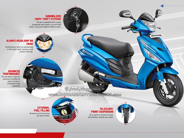 హీరో మోటోకార్ప్ 2017 మాయెస్ట్రో స్కూటర్లో బాహ్య వైపున ఇంధనాన్ని నింపే క్యాపును అందివ్వనుంది. మరియు ఇంజన్ ఇమ్మొబిలైజర్ కూడా పరిచయం అయ్యే అవకాశం ఉంది.
