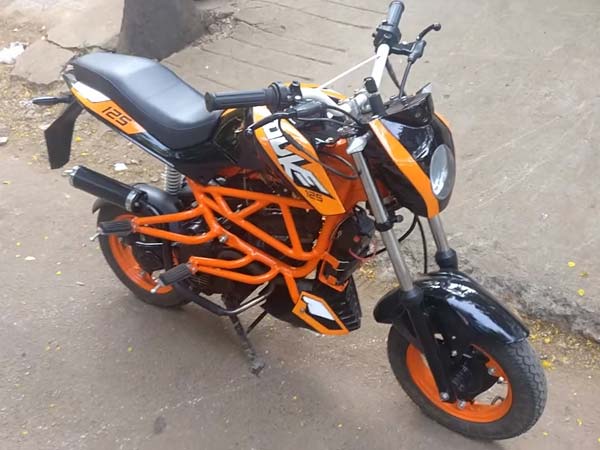 బెంగళూరుకు చెందిన ఓ వ్యక్తి తన స్కూటి పెప్ ప్లస్ స్కూటర్ను బేబి కెటిఎమ్ డ్యూక్ బైకుగా మోడిఫై చేసుకున్నాడు.