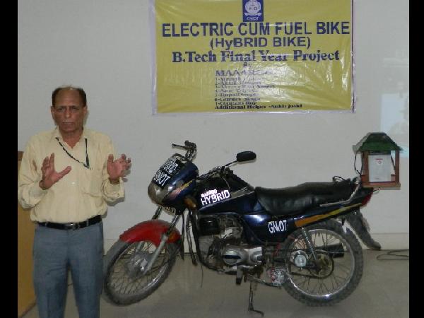 ఇప్పటి వరకు మనం హైబ్రిడ్ కార్ల (పెట్రోల్ లేదా డీజిల్ పవర్తో పాటు బ్యాటరీ పవర్తో నడిచేవి) గురించి తెలుసుకున్నాం. అదేవిధంగా, హైబ్రిడ్ మోటార్సైకిళ్లు, స్కూటర్లు ఉన్నప్పటికీ, అవి కాన్సెప్టులకు మాత్రమే పరిమితం అయ్యాయి. అయితే, గ్రేటర్ నోయిడాకు చెందిన మన ఇంజనీరింగ్ విద్యార్థులు దీనిని నిజం చేసి చూపించారు. అటు పెట్రోల్తోను ఇటు బ్యాటరీతోను నడిచే హైబ్రిడ్ మోటార్సైకిల్ను సృష్టించారు. జిఎన్ఐఓటి (గ్రేటర్ నోయిడా ఇన్స్టిట్యూట్ ఆఫ్ టెక్నాలజీ) ఫైనల్ ఇయర్ మెకానికల్ ఇంజనీరింగ్ విద్యార్థులు.